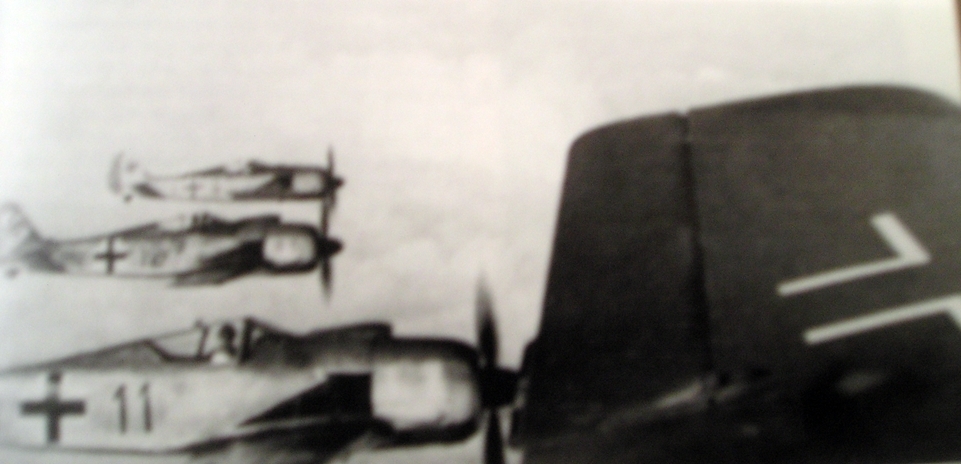 Cuatro Focke-Wulf 190 A-3 del Ala de Caza 26 fotografiados en vuelo cerrado sobre Francia en 1942.
