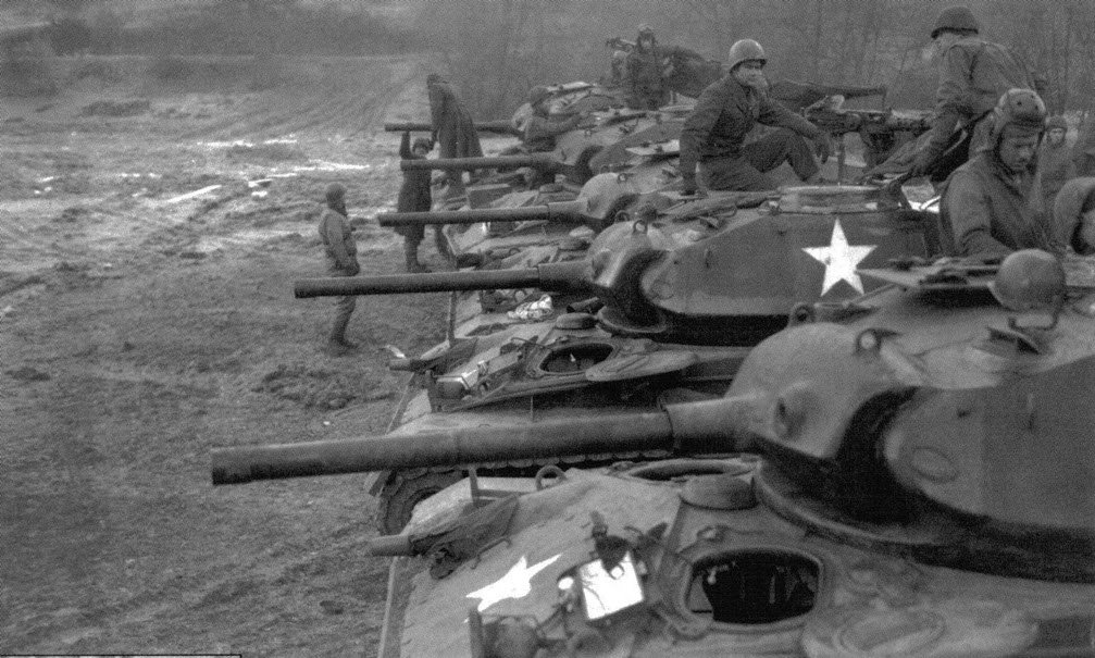 Un recién llegado al frente grupo de tanques M24 Chafee, listo para entrar en acción el 26 de Diciembre de 1944 cerca de Kornelmunster.