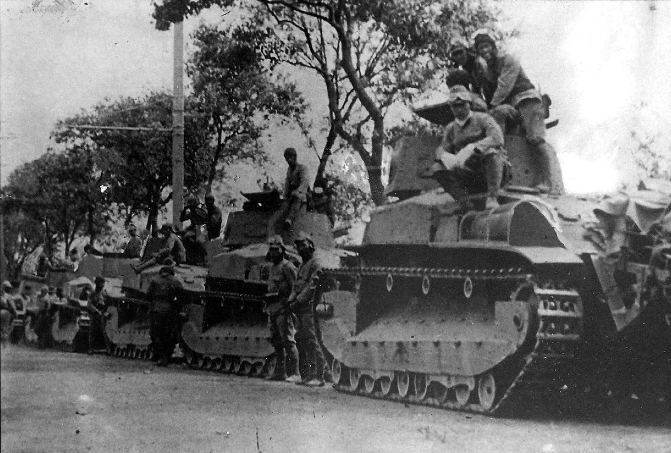 Una columna de tanques Japoneses del Tipo 98B fotografiados en un alto en el camino en algún lugar de China.