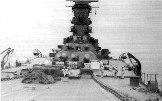 Vista desde proa del acorazado Japonés Musashi en Junio de 1942.