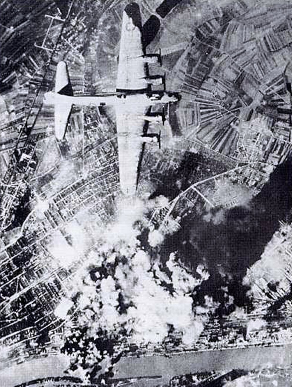 Un B-17 sobre Ludwigshafen el 25 de Septiembre de 1944, día en que se atacaron la planta de gasolina sintética y las estación de trenes. .